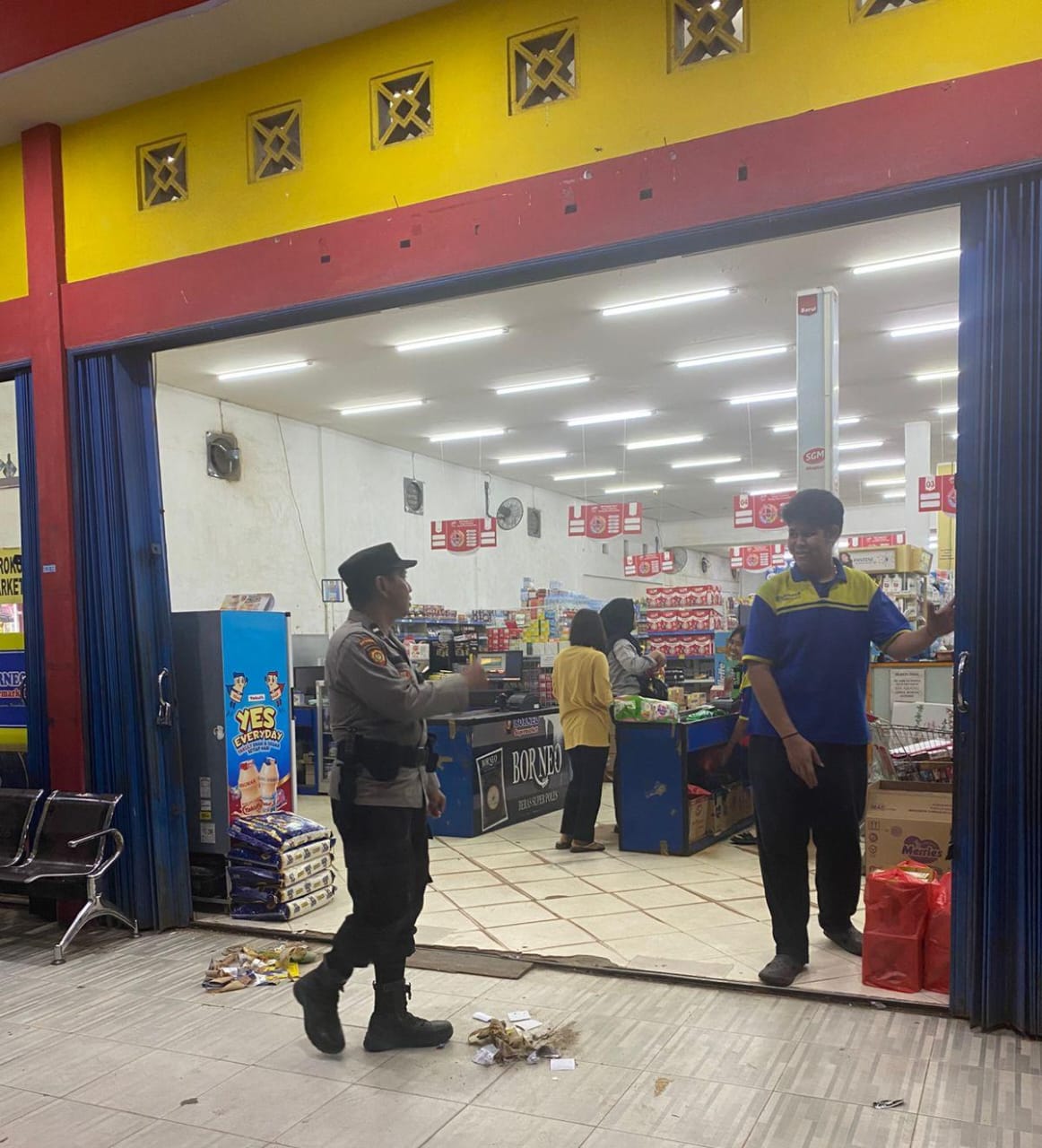 Lamandau – Dalam rangka menjaga keamanan dan ketertiban masyarakat (Kamtibmas) Patroli Polsek Bulik melaksanakan patroli sambang dialogis kepada pengunjung dan karyawan Alfamart di kawasan pertokoan wilayah Polsek Bulik, Senin (12/1/26) Malam.