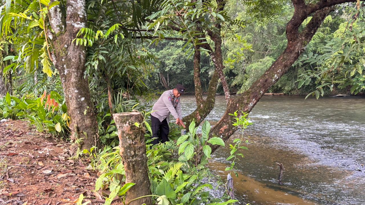 Lamandau – Polsek Delang, Piket Polsek Delang melakukan kegiatan rutin pengecekan debit air DAS Delang di TMA Kelurahan Kudangan RT.02 Kecamatan Delang, Kamis (15/1/26) Pagi