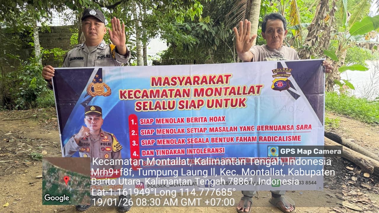 **Tribratanews.kalteng.polri.go.id – Polres Barito Utara –** Polsek Montallat menggelar sosialisasi tentang bahaya hoax (berita bohong) dan dampak negatifnya bagi masyarakat. Kapolres Barito Utara, AKBP Singgih Febiyanto, S.H., S.I.K., melalui Kapolsek Montallat, IPDA RADEN KOMARUDIN HIDAYATULLOH S.H., menekankan pentingnya keterampilan masyarakat dalam memilah informasi agar tidak terjerumus dalam penyebaran hoax yang dapat merusak persatuan dan kesatuan.