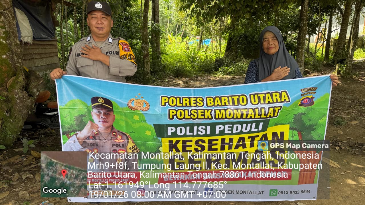 Tribratanews.kalteng.polri.go.id – Polres Barito Utara – Personel Polsek Montallat jajaran Polres Barito Utara, Polda Kalteng melaksanakan Sosialisasi Germas di Kel. Tumpung laung ll Kec. Montallat, Kab. Barito Utara.*Senin (19/01/2026) Pagi mulai Pukul 08:00 WIB.*