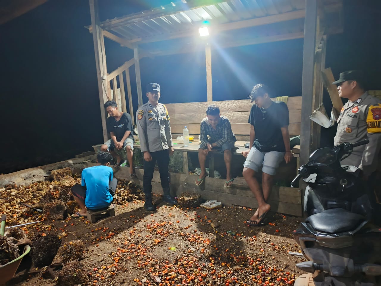Menyambangi pekerja ditempat kerjanya dan pada kesempatan yang baik tersebut, Personil Polsek berdialog menyampaikan pesan-pesan kamtibmas. Berhubung cuaca yang tidak menentu untuk membatasi aktivitas di luar rumah serta untuk tetap disiplin menjaga kesehatan.