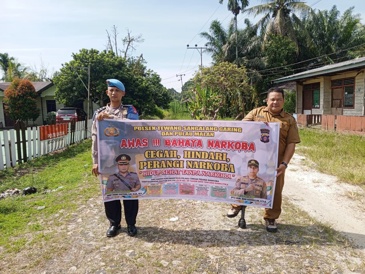 Melalui Media Spanduk, Polsek Tewang Sangalang Garing dan Pulau Malan Imbau Warga Tidak Terjerumus  Penyalahgunaan Narkoba.
