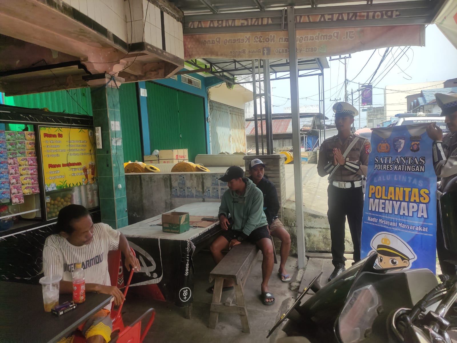 Polres Katingan-Personil Satlantas Polres Katingan Melaksanakan Kegiatan Patroli Polantas Menyapa masyarakat Dalam upaya meningkatkan pemahaman masyarakat tentang aturan berlalu lintas dijalan raya dengan menyapa ngobrol santai sembari di selingkan dengan himbauan Keselamatan Berlalu lintas.
