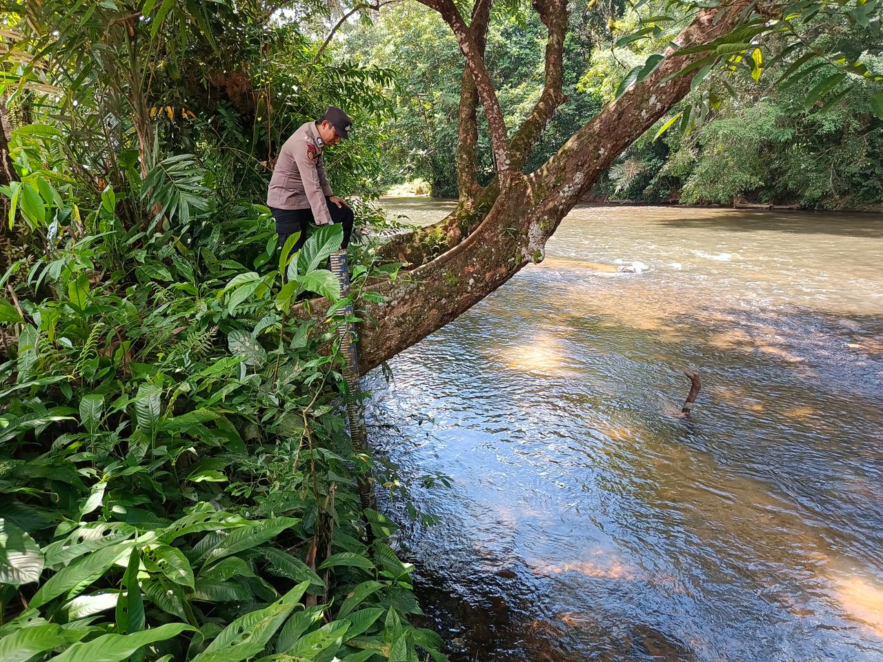 Lamandau – Polsek Delang, Piket Polsek Delang melakukan kegiatan rutin pengecekan debit air DAS Delang di TMA Kelurahan Kudangan RT.02 Kecamatan Delang, Kamis (29/1/26) Pagi