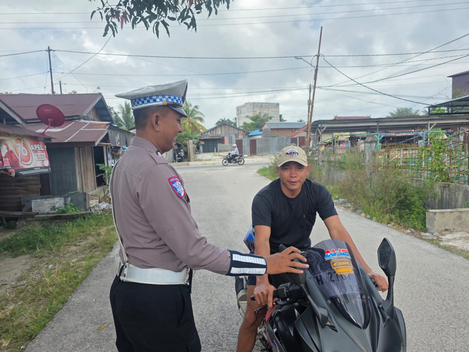 Polres Katingan – Personel Satlantas Polres Katingan melaksanakan kegiatan peneguran kepada Pengguna Jalan yang Tidak Menggunakan Helm.
