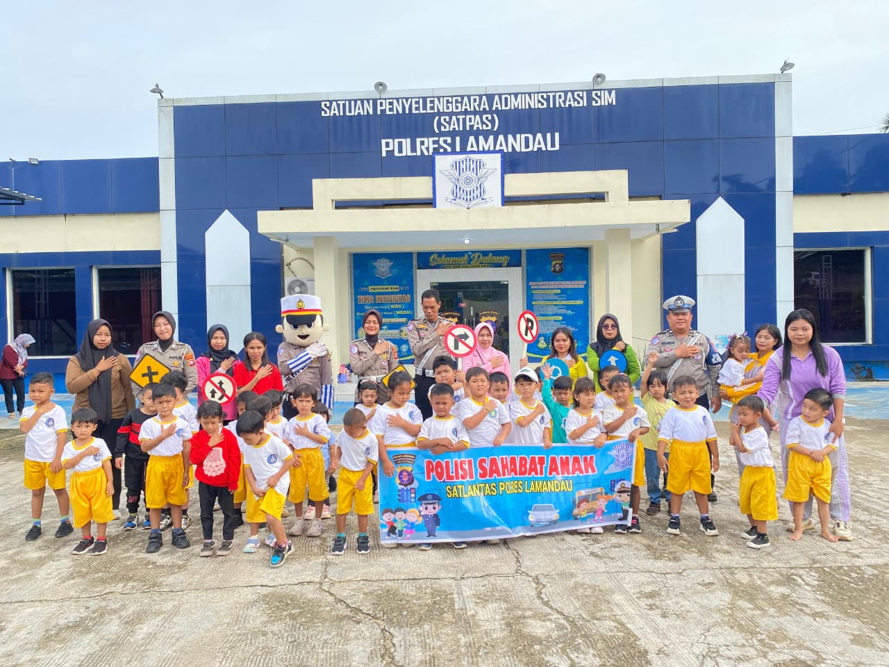 Lamandau – Satuan Lalu Lintas (Sat Lantas) Polres Lamandau menerima kunjungan dari TK Kemala Bhayangkari Kabupaten Lamandau dalam rangka kegiatan edukasi dan sosialisasi pengenalan rambu-rambu lalu lintas kepada anak-anak usia dini, bertempat di Mako Sat Lantas Polres Lamandau, Pada Hari Jumat (6/2/2026).