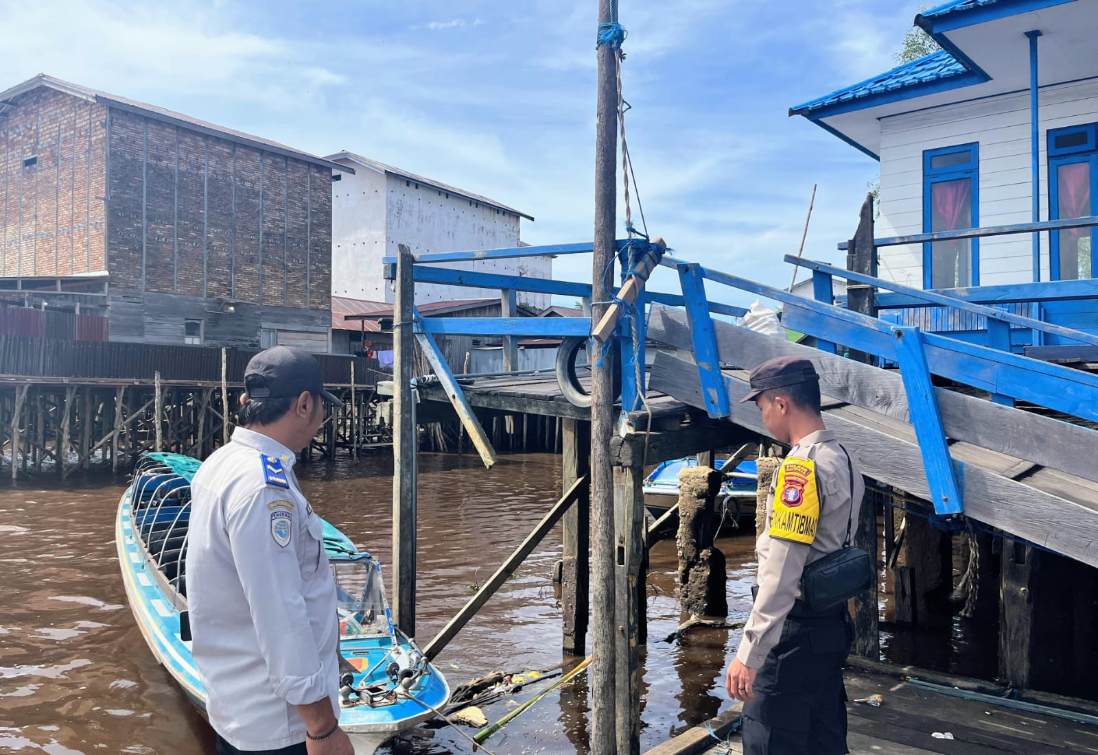 Polres Katingan — Personil Polsek Katingan Kuala melakukan pengecekan debit air di kawasan muara pesisir Pegatan, Kecamatan Katingan Kuala, Minggu (8/2/26) pagi.