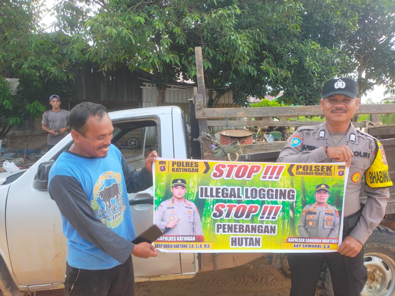 Kapolres Katingan AKBP DODIK HARTONO, S.H.,S.I.K.,M.H., melalui Kapolsek Sanaman Mantikei AKP SUWARDI , S.H menjelaskan kegiatan Bhabinkamtibmas jajaran Polres Katingan dengan cara sosialisasi kepada masyarakat agar mengerti dan memahami tentang larangan dan sangsi bagi pelaku pekerja Ileggal Logging serta mengerti bahwa dampak dan akibat yang di timbulkan akibat Ileggal Logging tersebut.