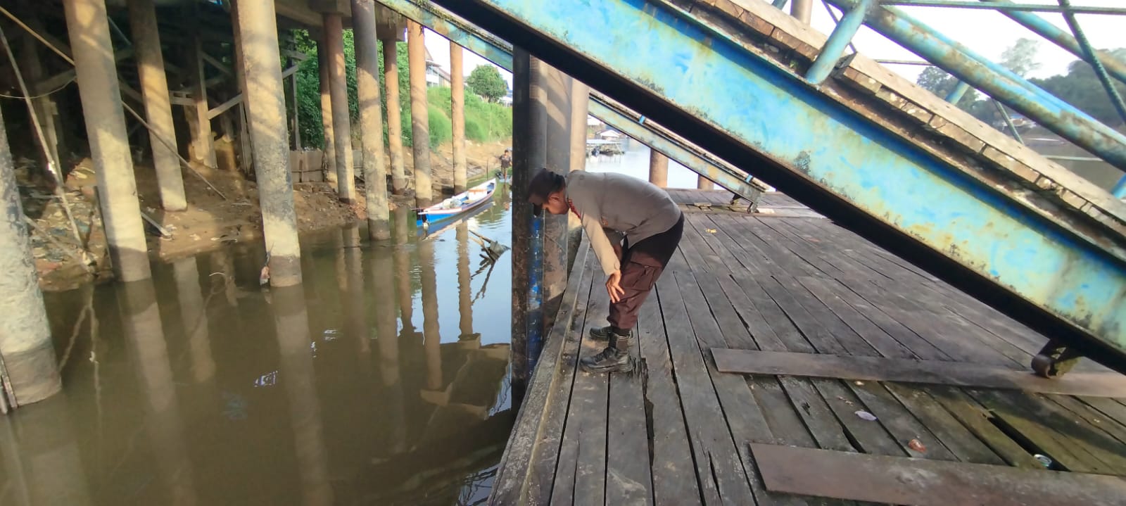 Lamandau – Personil Polsek Bulik melakukan kegiatan rutin pengecekan debit air DAS lamandau di TMA Kelurahan Nanga Bulik, Senin (9/2/26) pagi