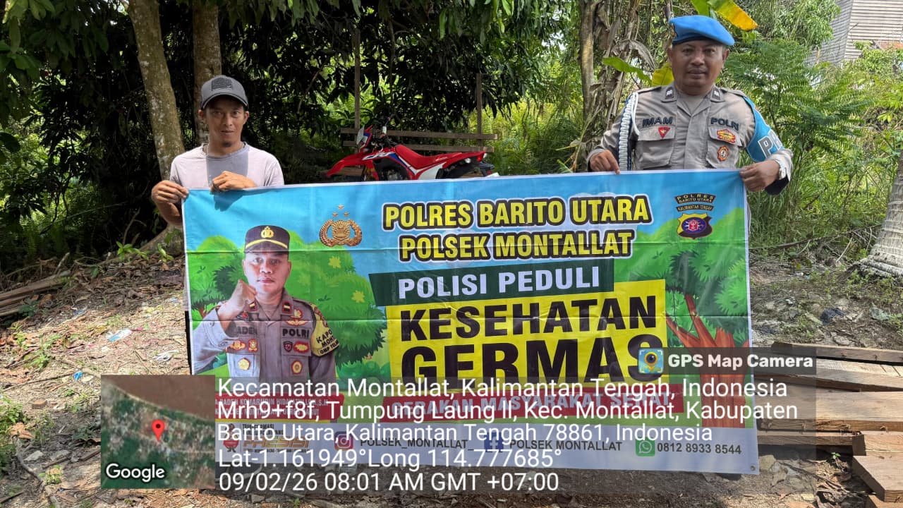 Tribratanews.kalteng.polri.go.id – Polres Barito Utara – Personel Polsek Montallat jajaran Polres Barito Utara, Polda Kalteng melaksanakan Sosialisasi Germas di Kel. Tumpung laung ll Kec. Montallat, Kab. Barito Utara.Senin (09/02/2026) Pagi mulai Pukul 08:00 WIB.