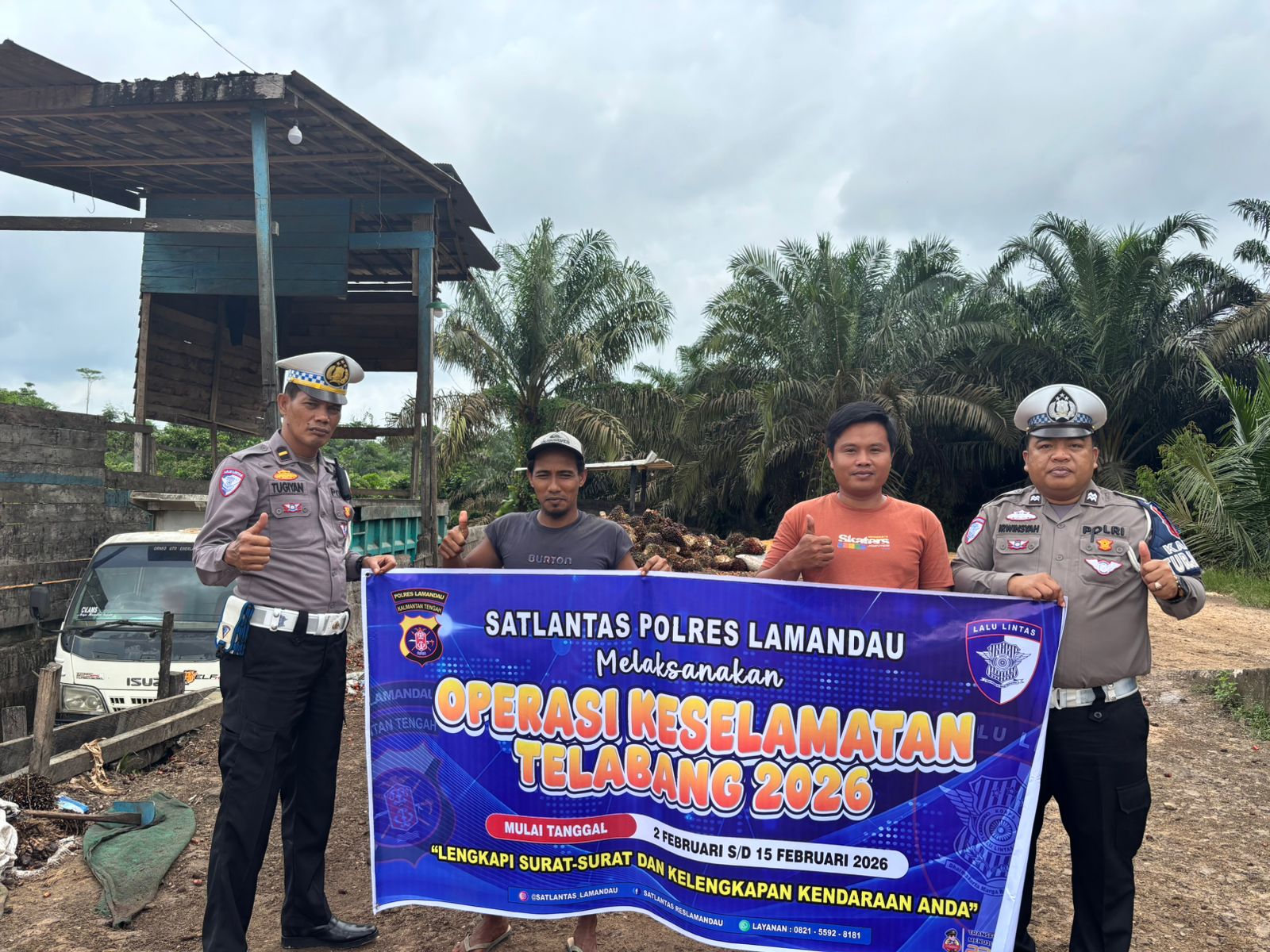 Lamandau – Dalam rangka pelaksanaan Operasi Keselamatan Telabang Tahun 2026, Satuan Lalu Lintas (Sat Lantas) Polres Lamandau menggelar kegiatan sosialisasi Keamanan, Keselamatan, Ketertiban dan Kelancaran Lalu Lintas (Kamseltibcarlantas) kepada para pelaku usaha angkutan kelapa sawit di wilayah Kabupaten Lamandau, Kamis (12/2/2026).