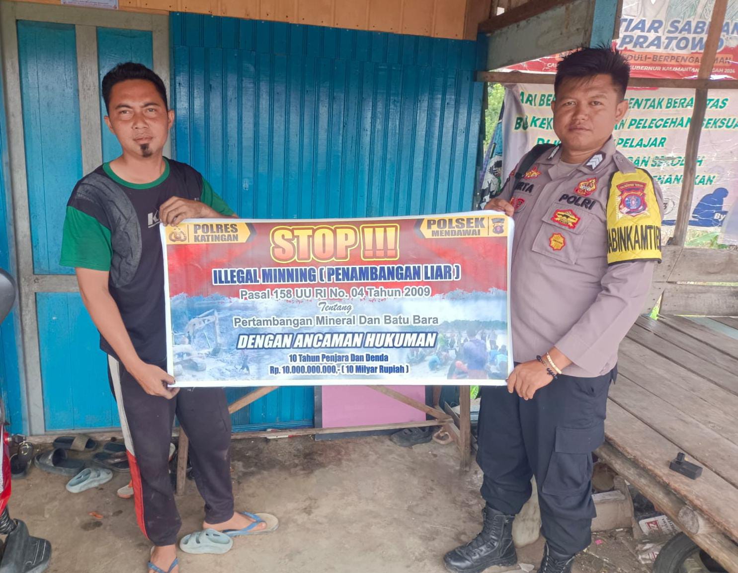 Upaya pencegahan Penambangan Emas Tanpa Ijin (PETI) di Kecamatan Mendawai, Bhabinkamtibmas sosialisasi kepada masyarakat.