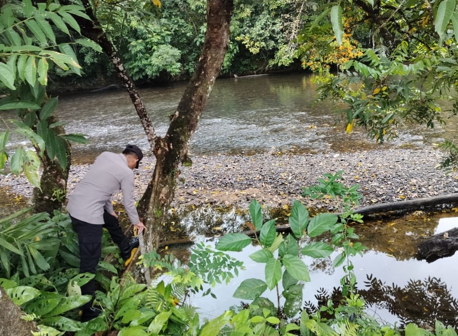 Lamandau – Polsek Delang, Piket Polsek Delang melakukan kegiatan rutin pengecekan debit air DAS Delang di TMA Kelurahan Kudangan RT.02 Kecamatan Delang, Selasa (3/3/26) Pagi