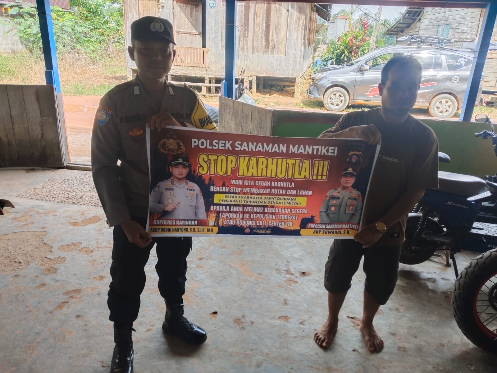 Kapolres Katingan AKBP DODIK HARTONO, S.H., S.I.K., M.H. melalui Kapolsek Sanaman Mantikei AKP SUWARDI, .S.H., menjelaskan kegiatan Bhabinkamtibmas jajaran Polres Katingan dengan cara sosialisasi kepada masyarakat agar mengerti dan memahami maklumat kapolda kalteng tentang larangan karhutla serta mengerti sanksi dan denda akibat pembakaran tersebut.