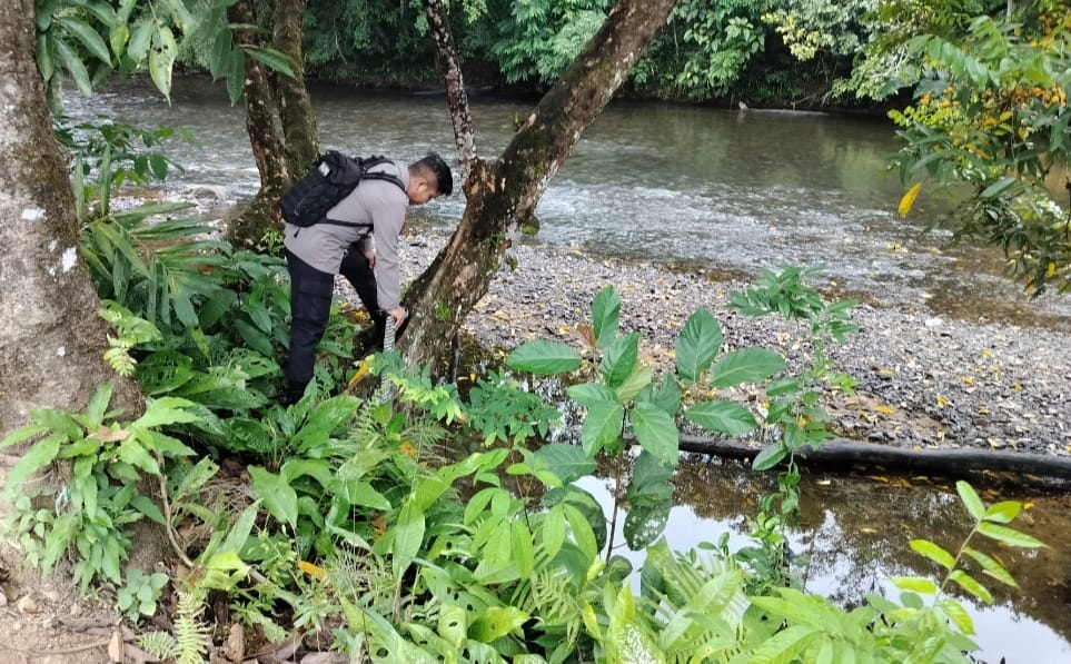Polres Lamandau – Polsek Delang, Piket Polsek Delang melakukan kegiatan rutin pengecekan debit air DAS Delang di TMA Kelurahan Kudangan RT.02 Kecamatan Delang, Minggu (8/3/26) Pagi