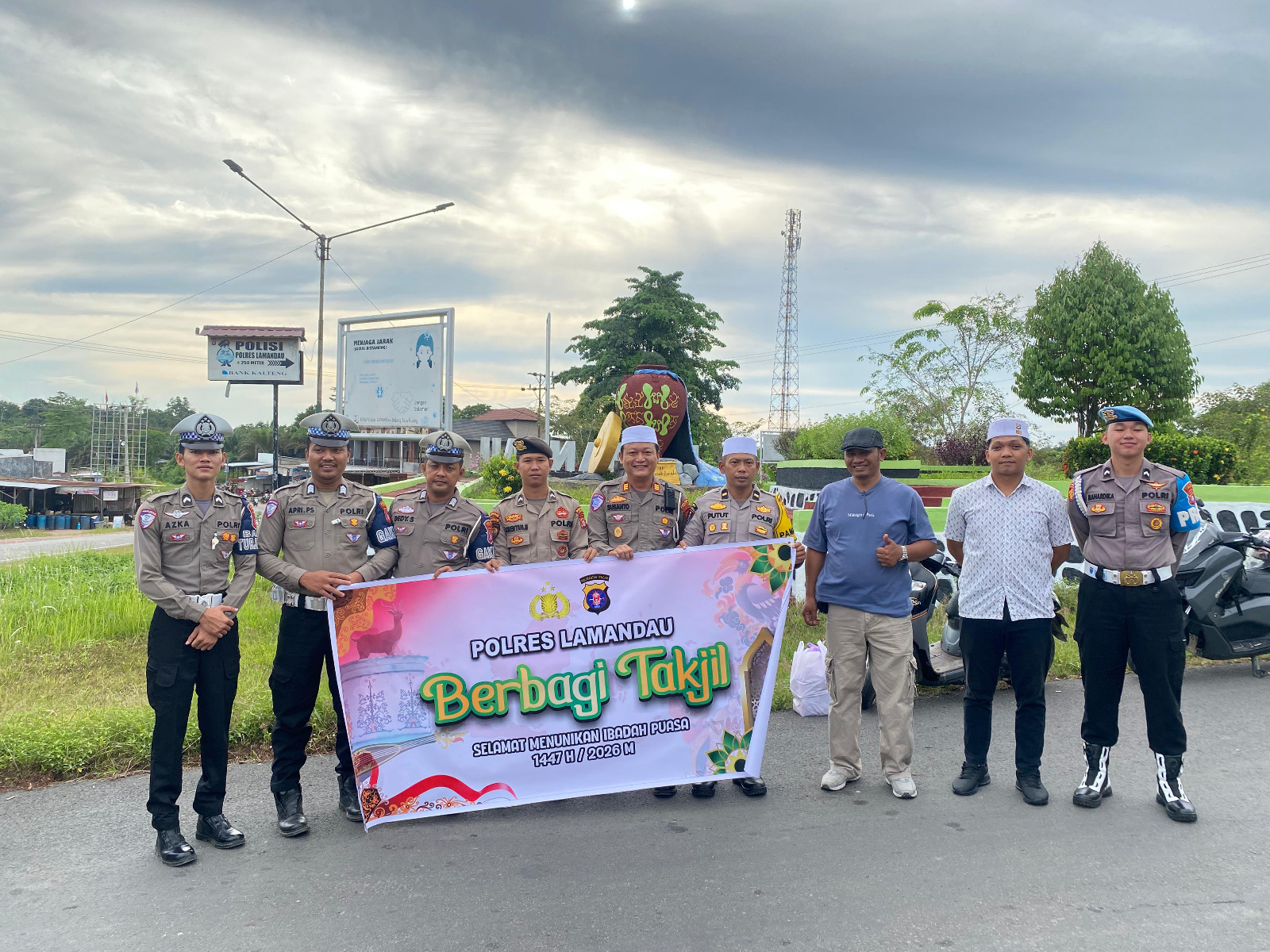 Lamandau – Dalam rangka meningkatkan kepedulian sosial serta mempererat hubungan dengan masyarakat di bulan suci Ramadan, personel Polres menggelar kegiatan berbagi takjil kepada para pengguna jalan, Minggu sore (8/3/2026).