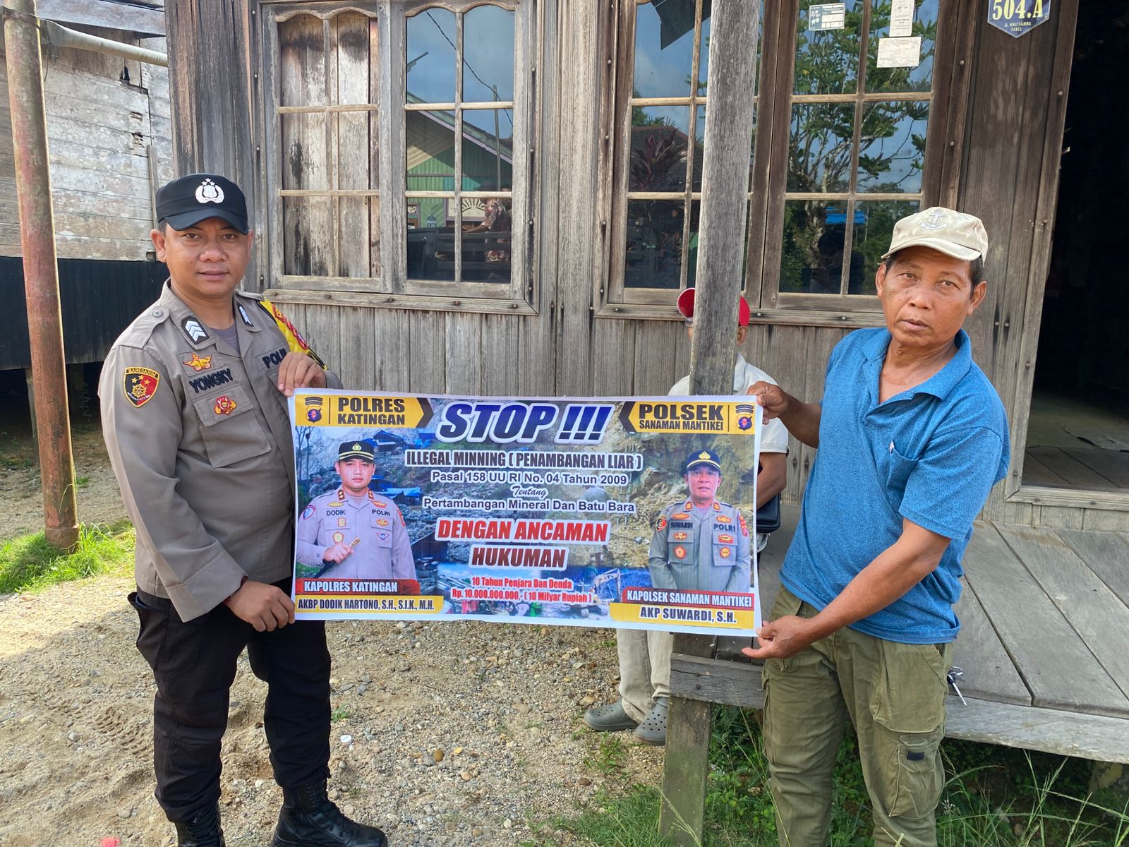 Kapolres Katingan AKBP DODIK HARTONO, S.H.,S.I.K.,M.H. melalui Kapolsek Sanaman Mantikei AKP SUWARDI, S.H., menjelaskan kegiatan Bhabinkamtibmas jajaran Polres Katingan dengan cara sosialisasi kepada masyarakat agar mengerti dan memahami tentang larangan Ilegal Mining serta mengerti bahwa dampak dan akibat yang di timbulkan akibat Illegal mining tersebut.