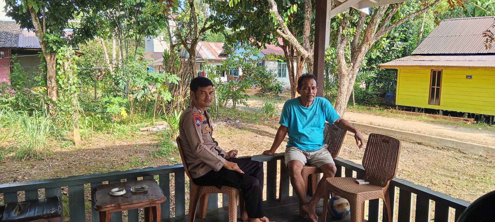 Polsek Katingan KualaBhabinkamtibmas Desa kampung Keramat Sosialisasi Himbauan tentang Karhutla Kepada petani.
