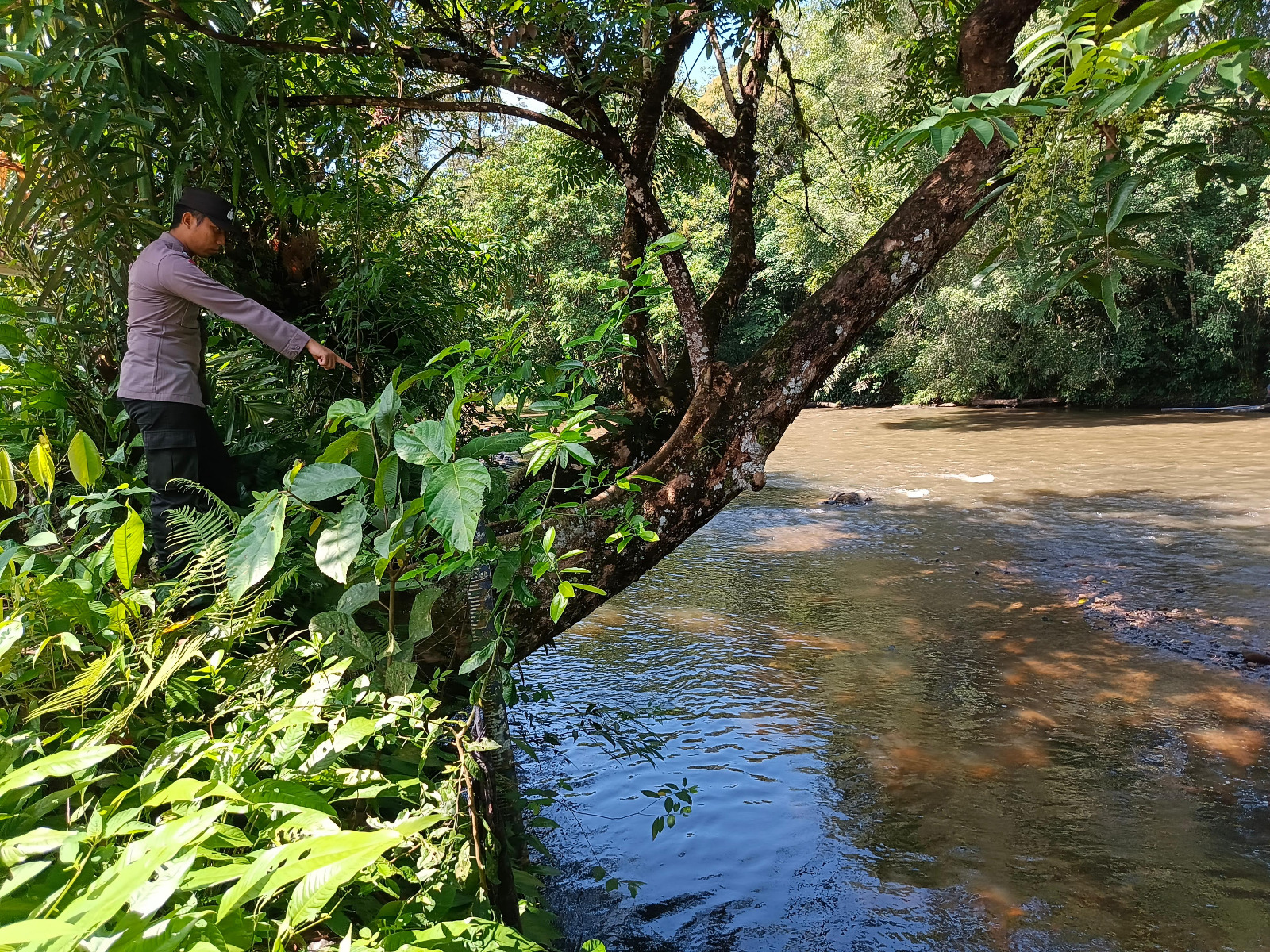 Lamandau – Polsek Delang, Piket Polsek Delang melakukan kegiatan rutin pengecekan debit air DAS Delang di TMA Kelurahan Kudangan RT.02 Kecamatan Delang, Jumat (27/3/26) Pagi