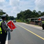 Personil Satlantas Polres Katingan sebagai anggota preemtif bergerak turun ke Jalan untuk meninformasikan kepada pengendara melalui pembagian brosur, untuk menciptakan keamanan dan keselamatan berlalu lintas.