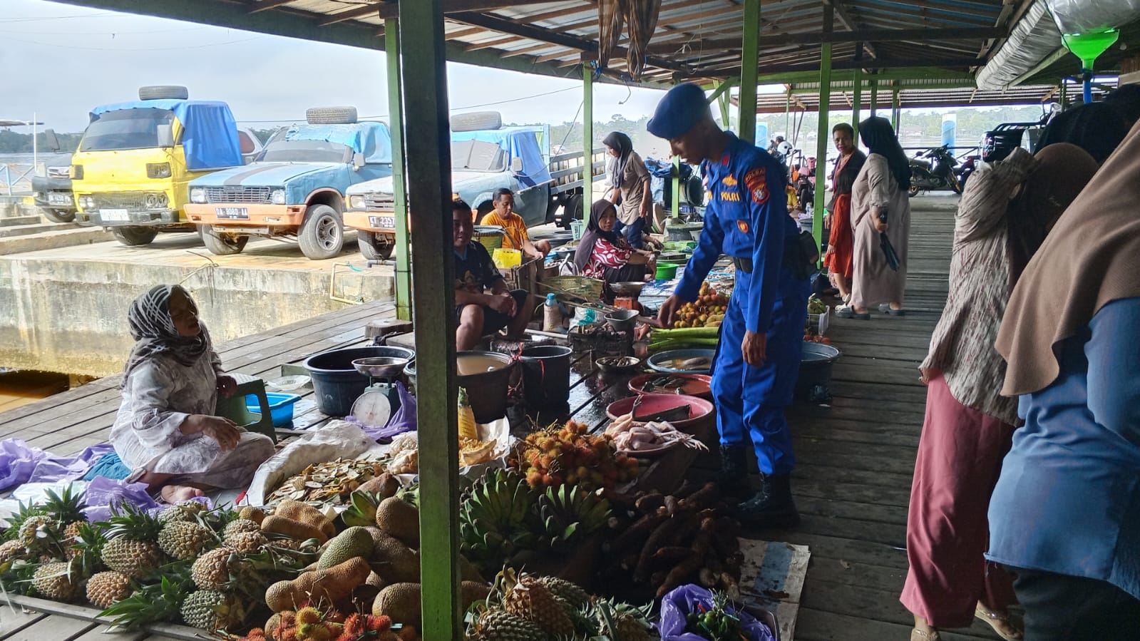 ‎Petugas melakukan patroli di kawasan pasar patanak Kabupaten Pulang Pisau, di mana petugas memberikan sosialisasi tentang pentingnya keamanan bersama dan mengajak masyarakat untuk aktif berperan dalam menjaga lingkungan.
