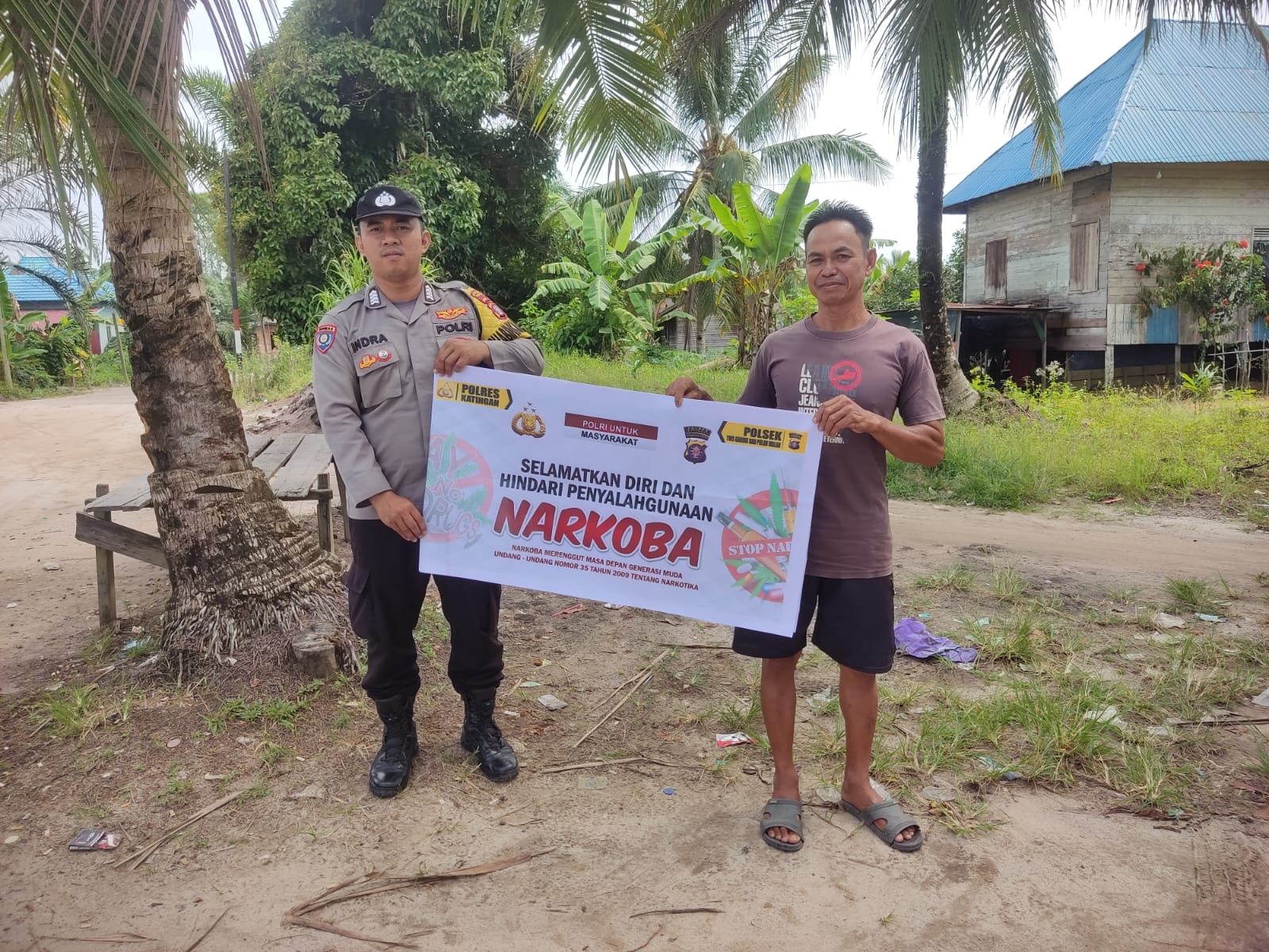 Melalui Imbauan dan media spanduk, Polsek Tewang Sangalang Garing dan Pulau Malan Imbau Warga Tidak Terjerumus Penyalahgunaan Narkoba.