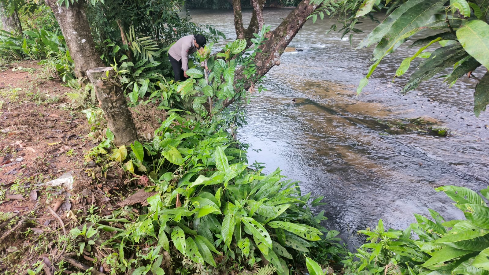 Lamandau – Polsek Delang, Piket Polsek Delang melakukan kegiatan rutin pengecekan debit air DAS Delang di TMA Kelurahan Kudangan RT.02 Kecamatan Delang, Kamis (16/4/26) Pagi