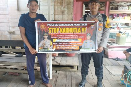 Polda Kalteng – Polres Katingan – Personel Bhabinkamtibmas Polsek S. Mantikei Brigpol Yoga Pranoto melaksanakan soasialisasi maklumat kapolda kalteng tentang larangan pembakaran hutan dan lahan (Karhu...