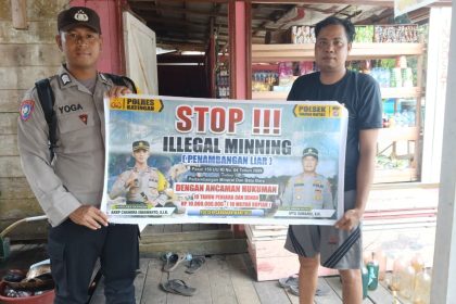 Polda Kalteng – Polres Katingan – Personel Bhabinkamtibmas Polsek Sanaman Mantikei Brigpol Yoga Pranoto melaksanakan sosialisasi tentang larangan terhadap pelaku Ilegal Mining kepada masyarakat di Des...
