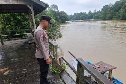 Polres Lamandau – Personel Polsek Lamandau Melaksanakan Patroli dan Pantau Cek debit air Sungai Lamandau Antisipasi terjadinya Bencana banjir di Wilayah Kabupaten Lamandau Khususnya Kecamatan La...