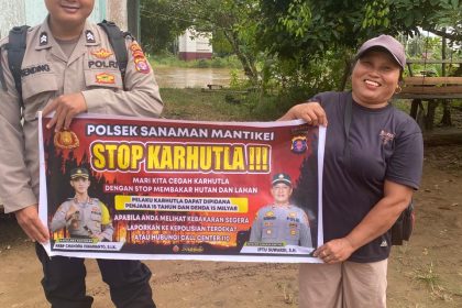 Polda Kalteng – Polres Katingan – Personel Bhabinkamtibmas Polsek S. Mantikei Briptu Sending melaksanakan sosialisasi maklumat kapolda kalteng tentang larangan pembakaran hutan dan lahan (Karhutla) k...