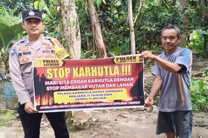 Polda Kalteng – Polres Katingan – Personel Bhabinkamtibmas Polsek S. Mantikei Brigpol Yoga Pranoto melaksanakan soasialisasi maklumat kapolda kalteng tentang larangan pembakaran hutan dan lahan (Karhu...